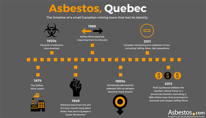 Infographic: Timeline of the history of Asbestos, Quebec.